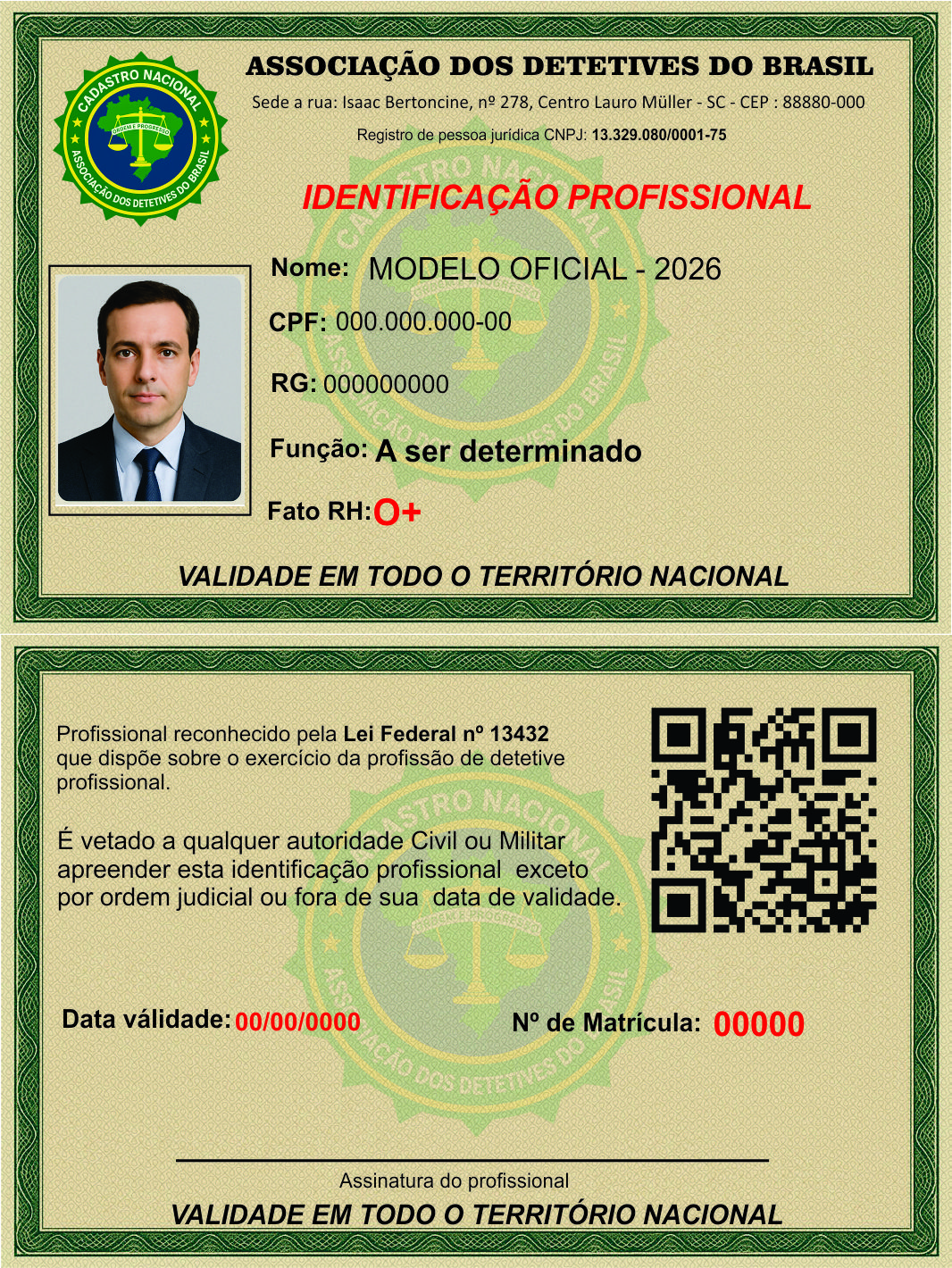 A Identificação Profissional da Associação dos Detetives do Brasil é válida em todo o território nacional.